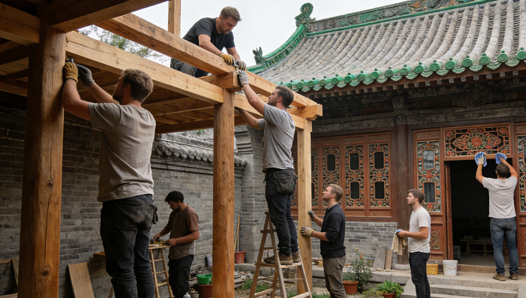 - 学术交流瞬间:和古建专家、研究员一起开会讨论、现场讲解的片段,比如专家指着古建构件讲榫卯结构、一起看测绘图纸的样子;